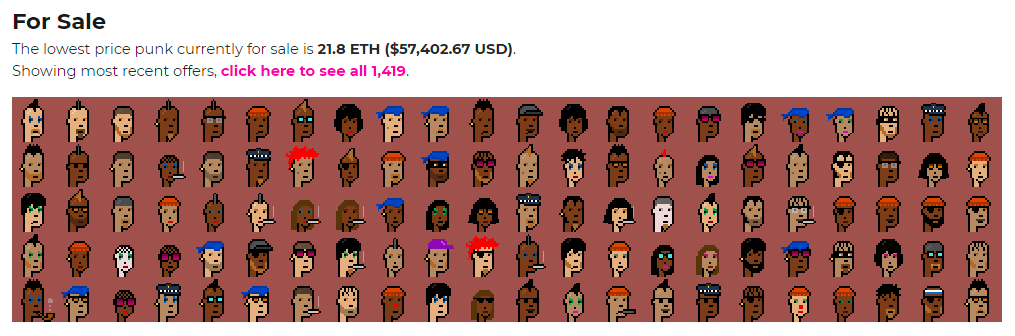 For example, consider that one CryptoPunk is now worth more than one bitcoin as of this week, or that a group of Punks are being sold at prolific mainstream auction house Christie’s next month. As for Autoglyphs, the current Glyph price floor on