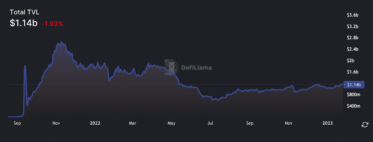 Another prominent DEX is Cap Finance. Cap has facilitated $21.7B in volumes over the past year and recently launched their V3.1 while gearing up for the launch of their V4. Other upcoming entrants into the perpetuals space include Vertex, which is launching an order-book exchange and Vela which utilizes a unique model that enables trades with 1000x leverage.