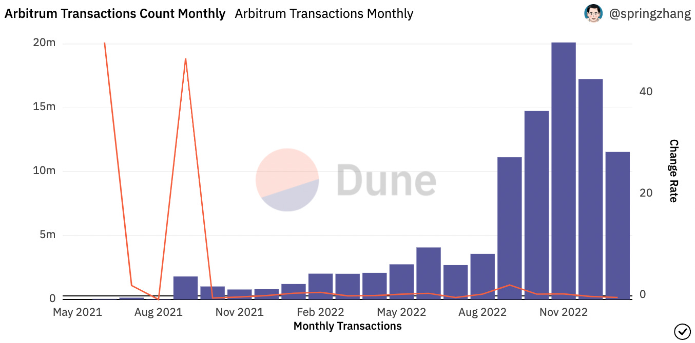 All in all, although network centralization risks remain, Arbitrum appears poised to build on its strong foundation of applications and continue on its growth trajectory in 2023.