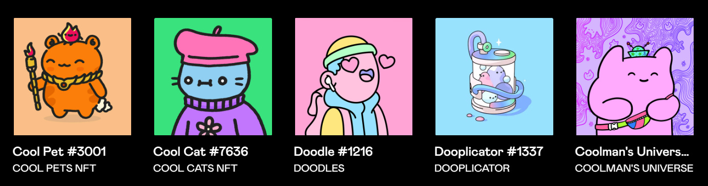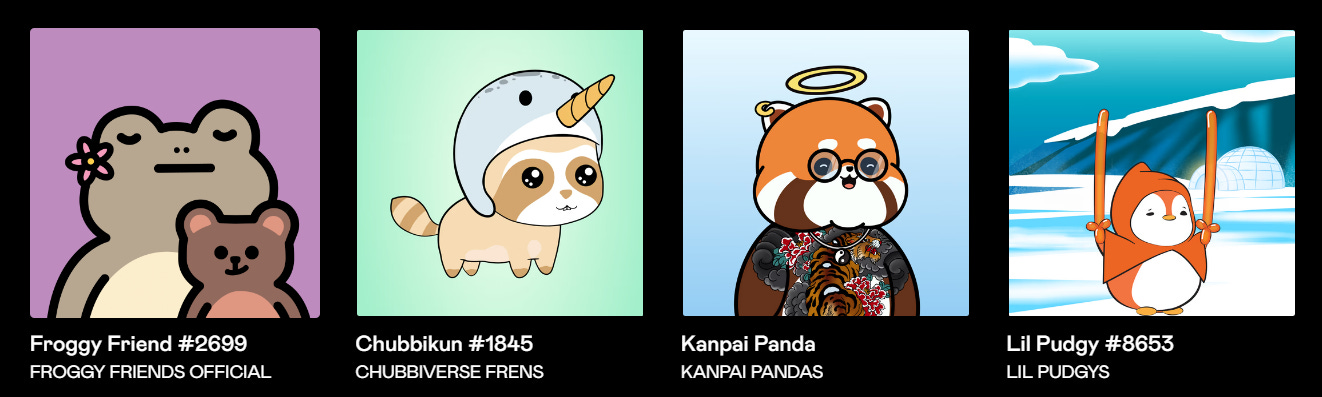For example, Nansen’s got indexes like the ART20 and the GAME50, and recently I’ve seen a lot of analysts sharing charts of the cute NFT projects they’re personally tracking. In combining these two inspirations, I think a compelling “CUTE15” of relevant collections worth tracking, at least as things stand, should feature the following projects: