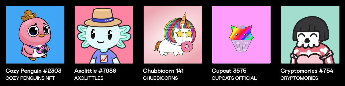 I posted about my CUTE15 proposal on Twitter and got a lot of great feedback there about projects that would also be fits for the list. Going off that feedback, I think you could definitely expand to a “CUTE20” grouping by tracking five additional collections that are relevant to the category: Axolittles, Chubbicorns, Cozy Penguins, CryptoMories, and Cupcats. I’m putting this expansion possibility on your radar too for good measure 📡