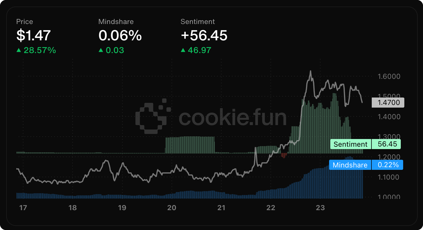Analytics platform Cookie’s token, $COOKIE, absolutely ripped this week, surging 80%+ following the launch of Snaps (its version of “Yaps,” more on this in the article below). The rally has traders doing some interesting comparative math, noting Cookie's ~$150M market cap against Kaito's ~$475M.