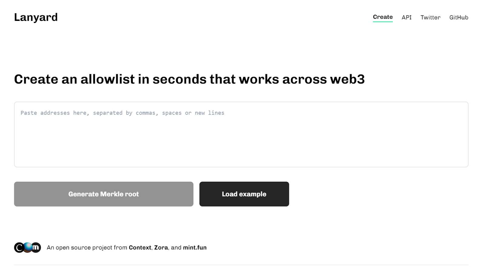 “Well, Lanyard securely stores your allowlist, Merkle root, and proofs so that your community can mint your project from their preferred interface — your website, mint.fun, and any other platform that integrates Lanyard. As more and more mints happen on platforms like mint.fun, it’s important that creators’ allowlists are part of the horizontal web3 stack and not siloed to a specific project page implementation.”