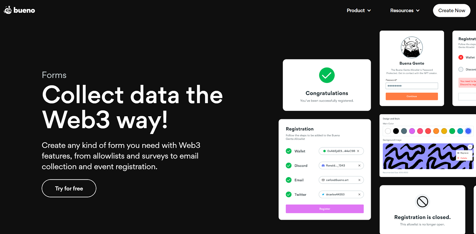 I’ve previously walked you through how Bueno’s Art Generator and Smart Contract Deployer resources work and what its Microverse is all about, but the project’s newest tool is Bueno Forms, which makes it easy to create and manage web3 forms like allowlists.