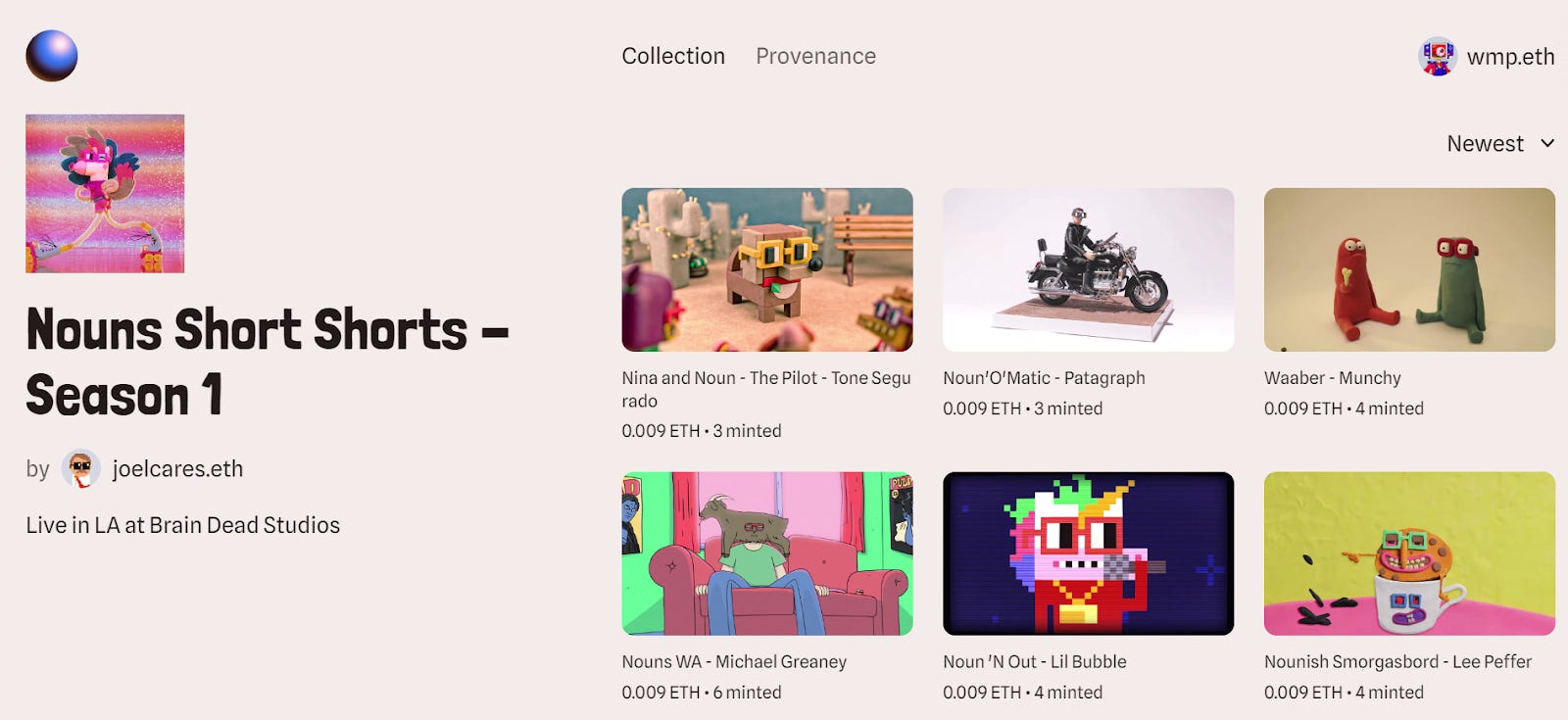 Summary: A series of short films created by the Nouns Stories team, currently minting on Zora. The series notably just had showings this week in Los Angeles and Melbourne. Not only are these varied animations delightful and thought-provoking, they also point toward a new Nounish way to fund films.
