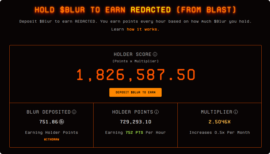 The general idea? Use Blur, hold $BLUR, earn REDACTED.