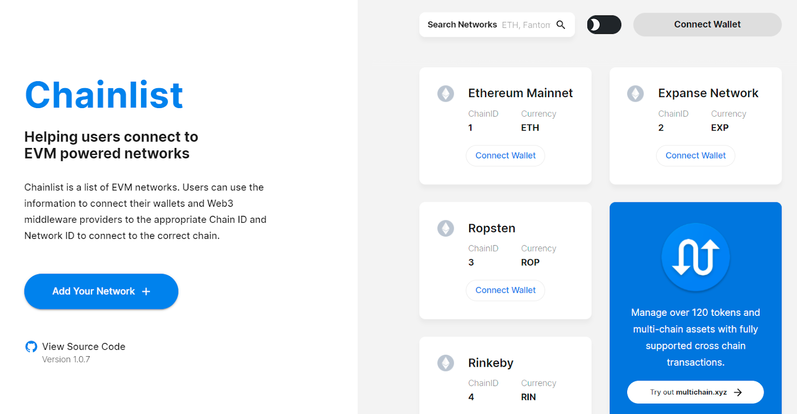 The most popular DeFi wallet today is MetaMask, so I’ll use that as an example. You could download the Metamask browser wallet, set up your Ethereum account, and then head over Chainlist and add all the available L2s you wish to have easy access to. I recommend “