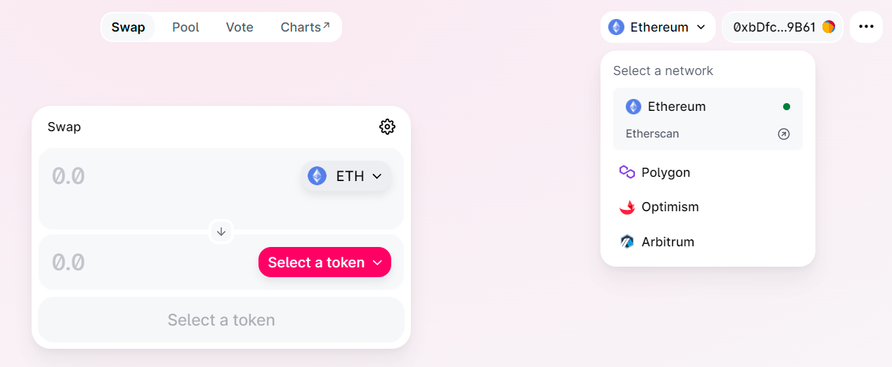 All DeFi projects that are multi-chain compatible have a similar button near the top of their front-end website that allows you to easily toggle between networks.