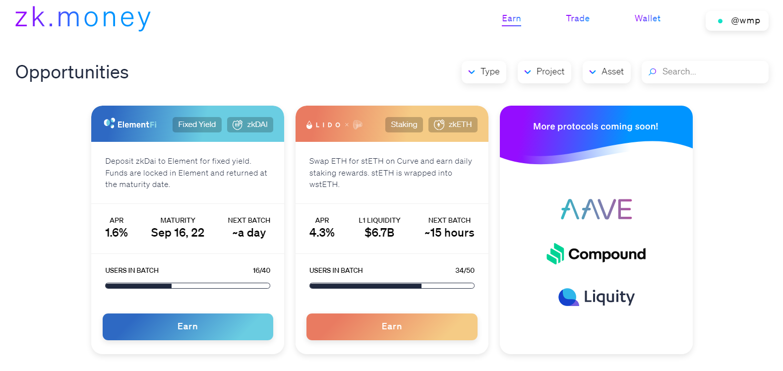 - Once you’re in, keep track of your Aztec DeFi investments using the Earn Positions tab on the https://zk.money/balance page