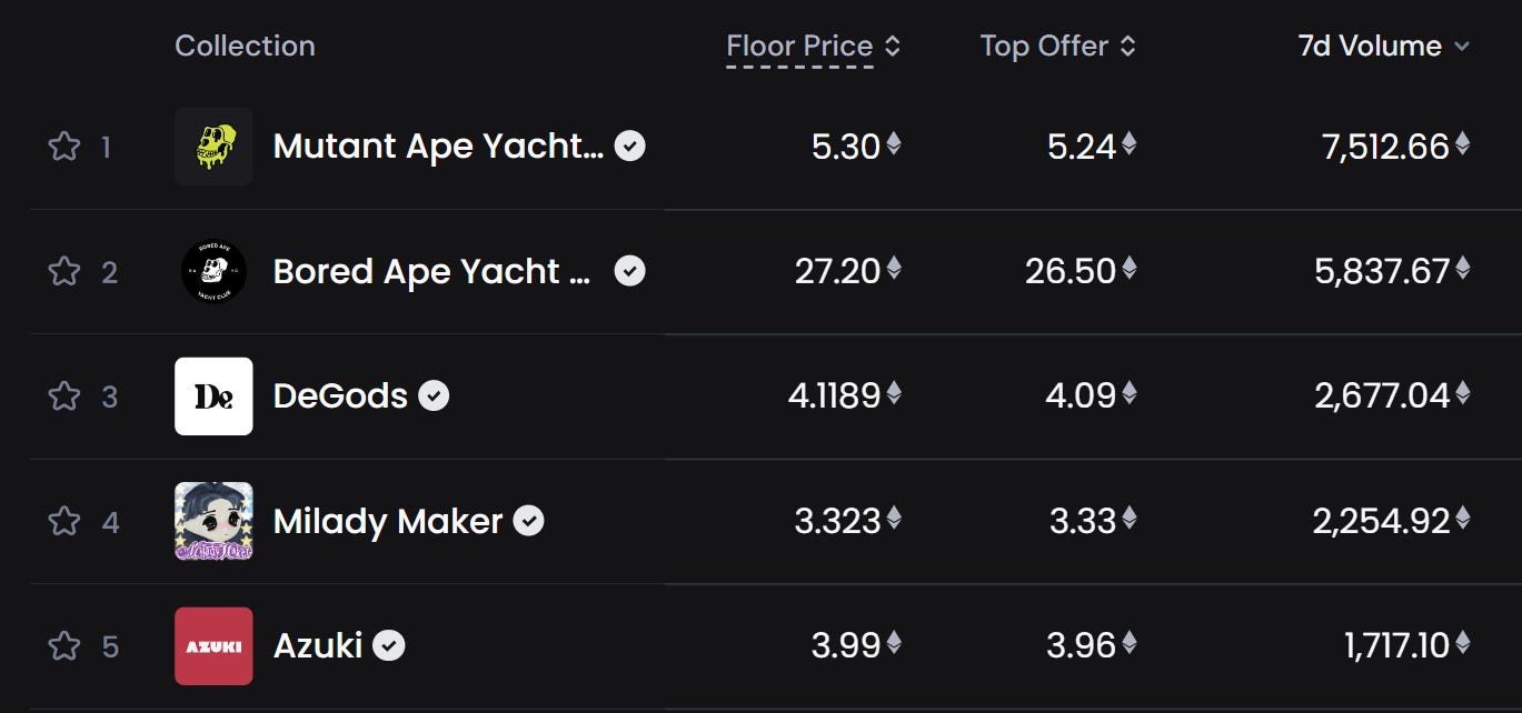 🔝 7D top collections by volume
