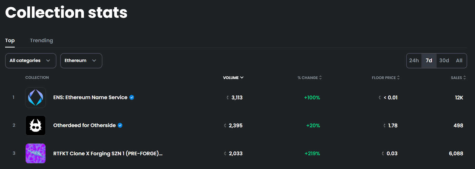 - ENS domains were the most traded NFT collection on Ethereum this week: