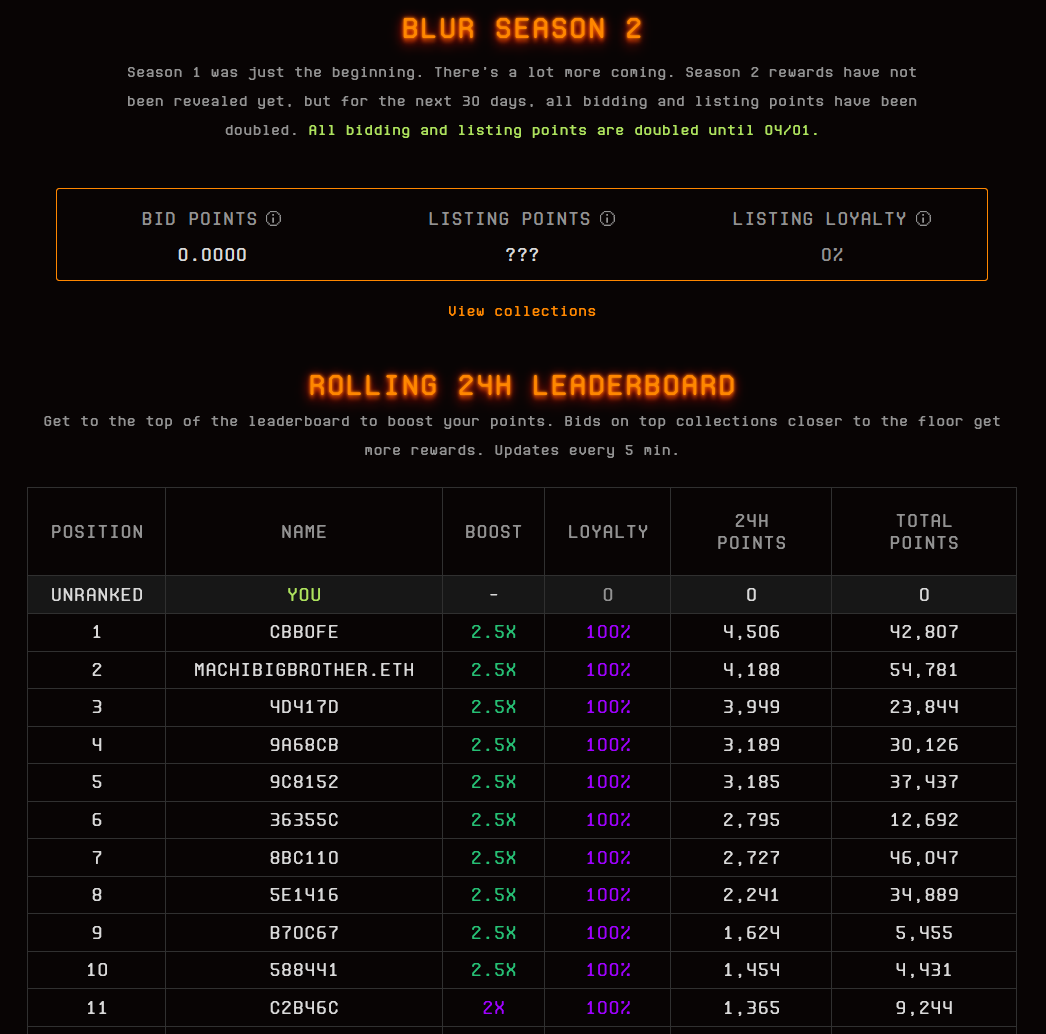 Blur’s airdrop was designed around a “loyalty point” system that awarded points based on the number of bids users placed on its marketplace. The bigger bids you placed, the closer those bids were to the collection’s floor price, the more loyalty points you got, and the larger your eventual airdrop.