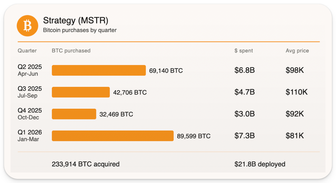 Strategy’s STRC is dominating the headlines, creating meaningful bitcoin buy pressure. Did you know Strategy has bought $7.3B of BTC in Q1 2026? Holy f dude… that's a lot! This is being fueled by breakout sales of the STRC product, giving Saylor the extra credit line he needs to smash the market-buy button.