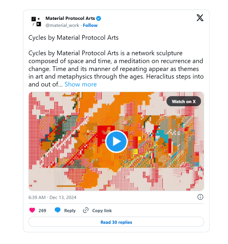 This brings me to my next recommendation, Cycles by Material Protocol Arts, which was launched in January 2025 and is the newest hypersculpture on Ethereum.