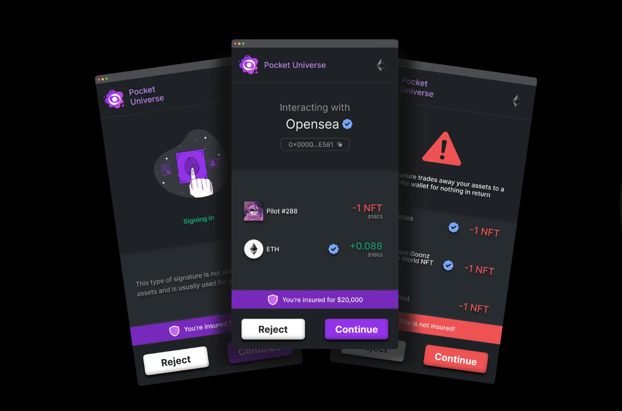 There are a host of browser extension tools that help users assess transactions before they happen including Pocket Universe, Fire, and Wallet Guard.