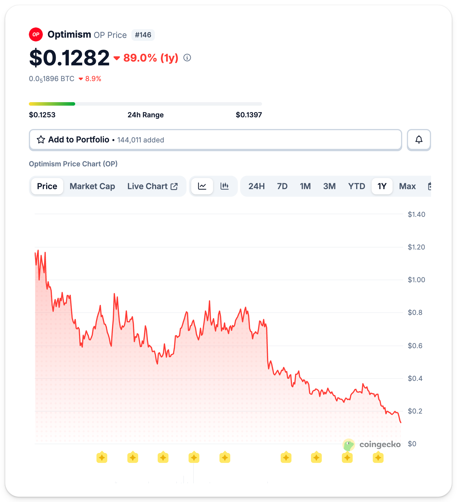 Base gebunden. In der Zwischenzeit mussten OP-Investoren brutale Verluste hinnehmen – nach weiteren starken Verlusten in dieser Woche liegt der Token 97 % unter seinem ATH vom März 2024.