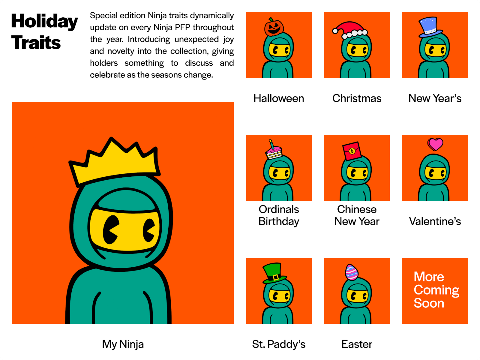 A team breaking ground here right now is Bitcoin Pizza Ninjas, which is using recursive inscriptions for its art generation and upgradeable traits. The builders have even deployed a Super Nintendo emulator on Bitcoin that its ninja characters can play within via recursive inscriptions.