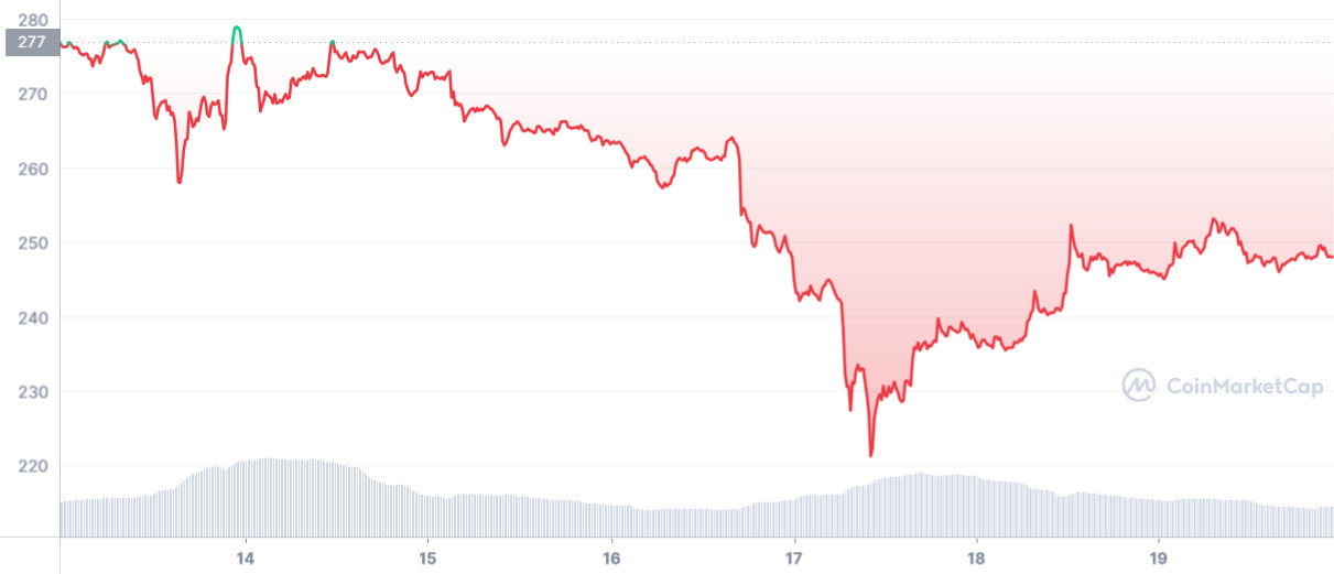 BNB saw a price plummet to $221 on December 17, but has since recovered 11% to $241 today.