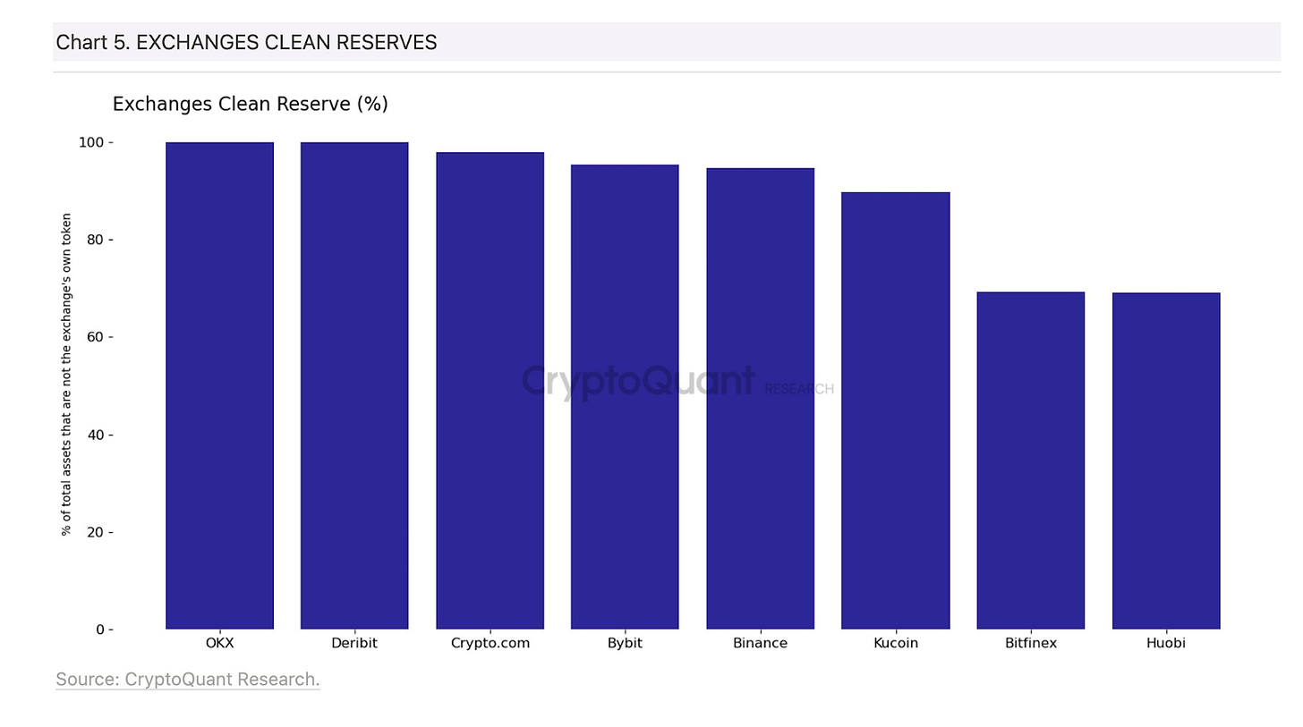 If Binance’s business was similarly built on its own BNB token, we may have more cause for concern. Thankfully, only ~10% of Binance’s reserves are made up of BNB, which is about the same as most other crypto exchanges.