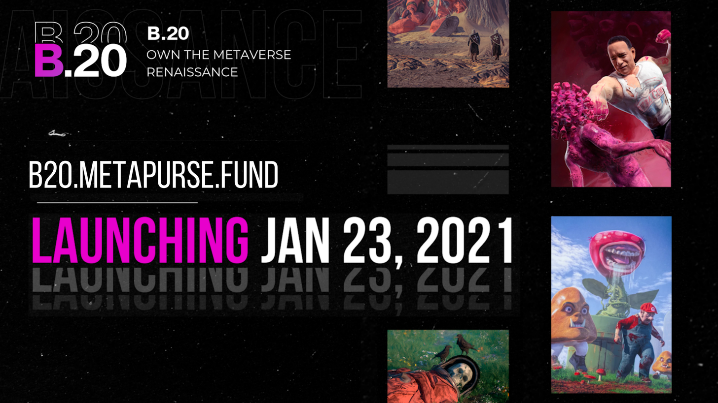 Metapurse is tokenizing a massive collection of NFTs, the B.20 bundle, which is centered around 20 signature 1/1 Beeple works the group collected for $2.2 million on Nifty Gateway last year. As part of the effort, Metapurse is building virtual museums for the B.20 pieces in Cryptovoxels, Decentraland, and Somnium Space.