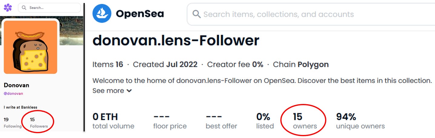 Consider Lenster, a Facebook-like app built on Lens Protocol. I have a grand total of 15 followers on Lenster. This means that 15 awesome people on Lenster have chosen to click “follow” on my Lenster profile and mint a follower NFT.