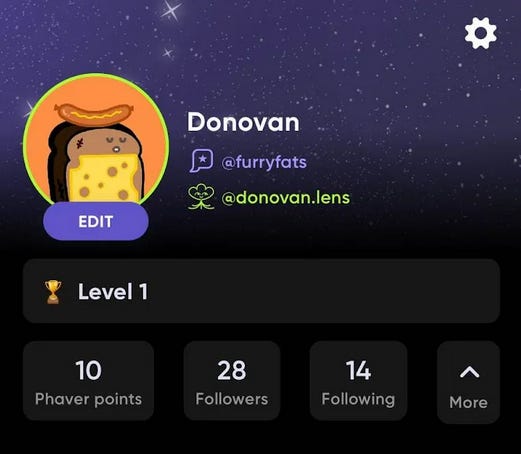 So when I jump to another app on Lens Protocol like the Twitter-like app Phaver - my social clout is still intact. As long as other Lens apps interpret their follower count metrics by mirroring the number of Follow NFTs minted, it should look the same.