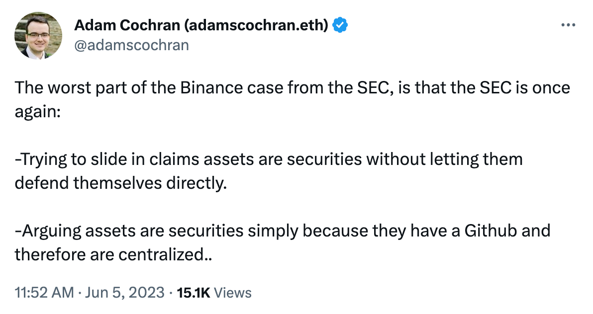 Make no mistake: the SEC’s claims against Binance are concerning. Also concerning though are the SEC's concerted efforts to stifle a broad range of actors across the crypto industry.