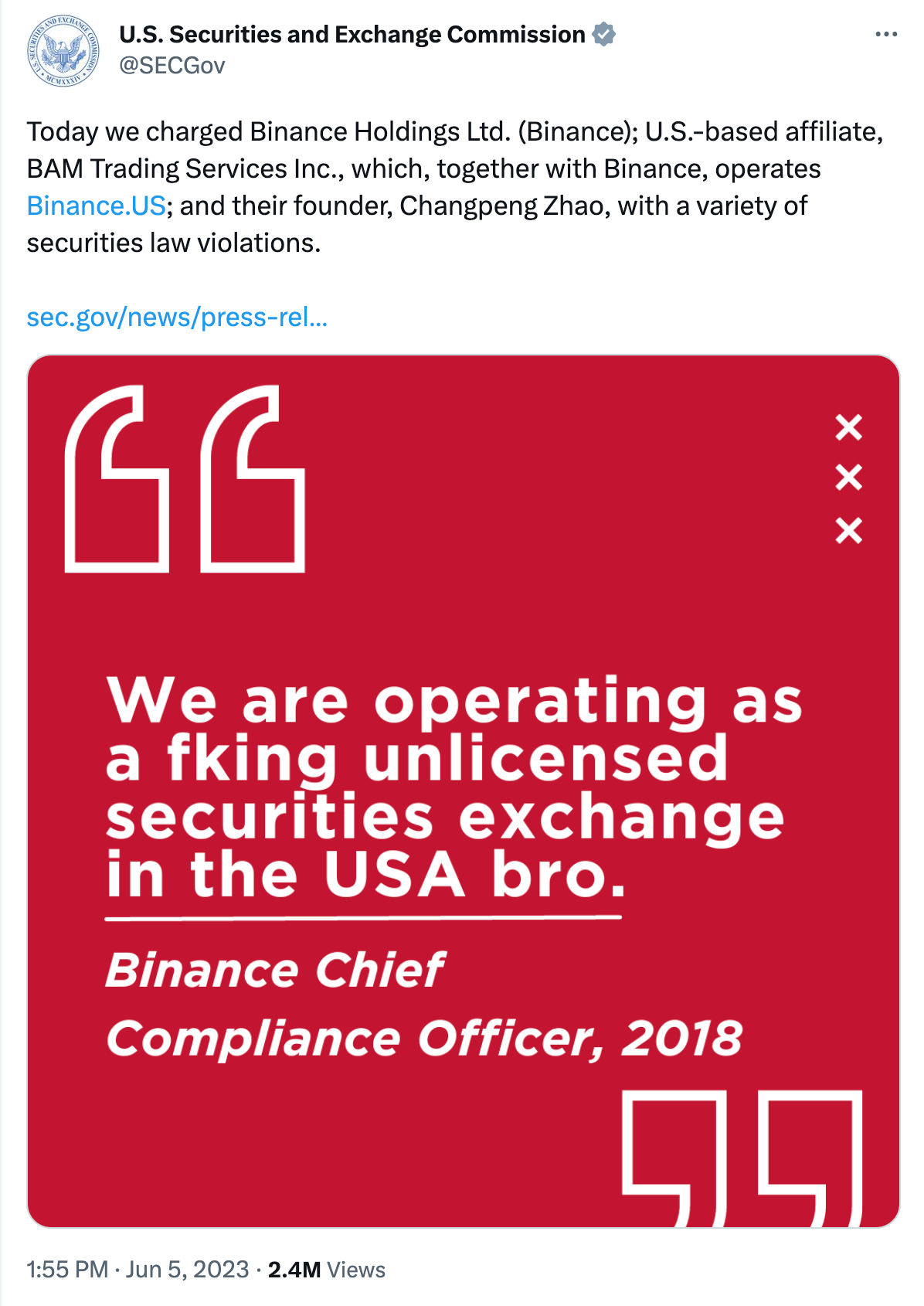Today, we dig into the SEC complaint against Binance, unpacking what it alleges and what could come next.