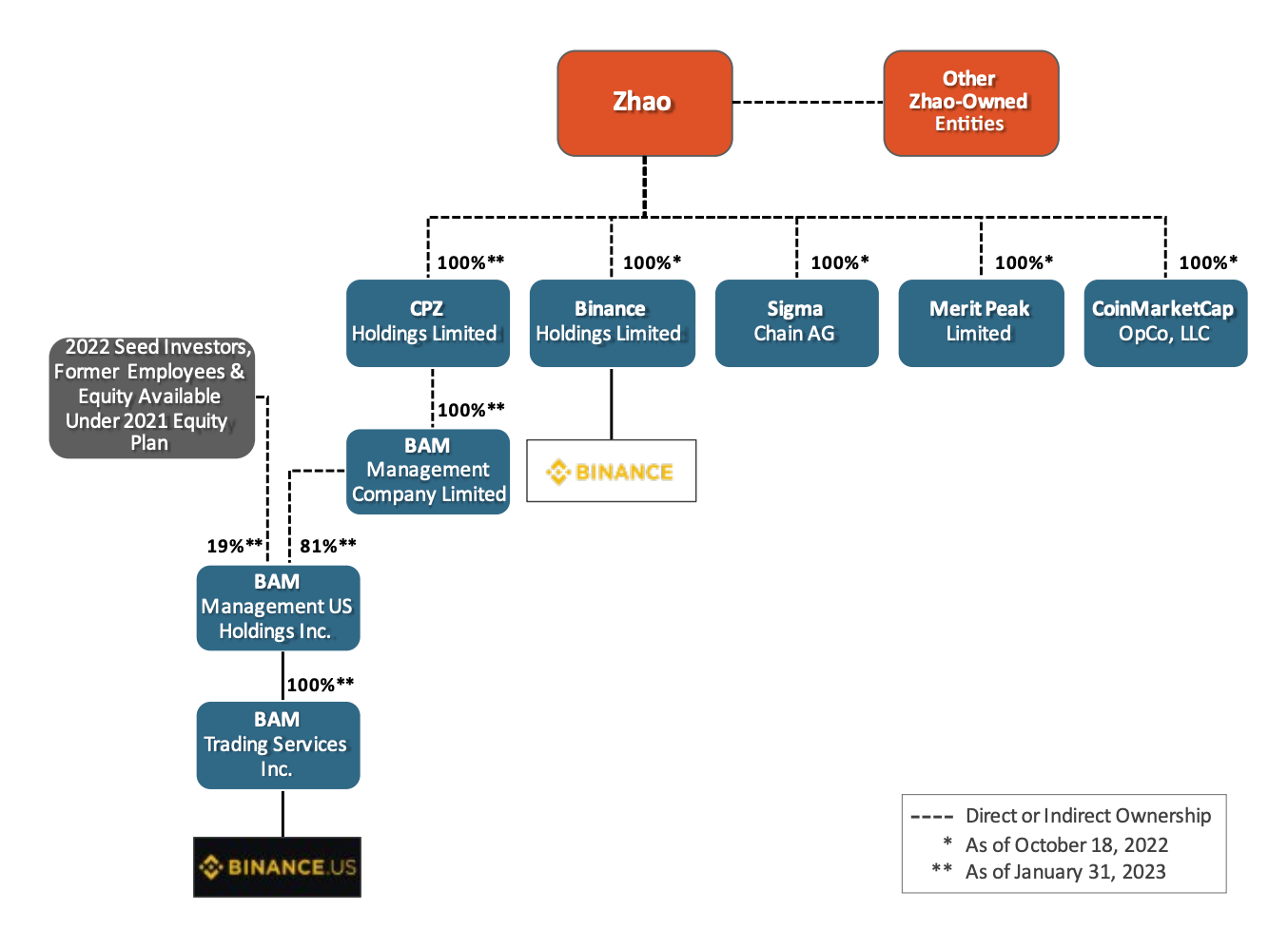 While this plan intended to silo off Binance.US control from CZ and the broader Binance corporation, in reality, an incredibly close corroboration continues to exist between the two – CZ has held at least 81% ownership over the entities controlling Binance.US since its inception.
