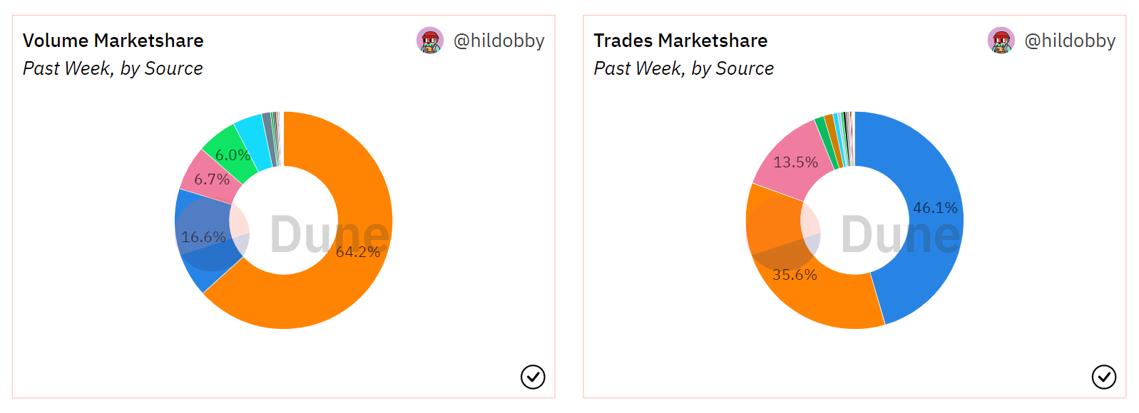 OpenSea Pro for months now, so the new surprise oncomer to the showdown was LooksRare, which did 6% of the 7D volume in the NFT space this week. That’s not surprising considering that LooksRare, which first launched in January 2022, is riding the momentum of its new V2 platform release.