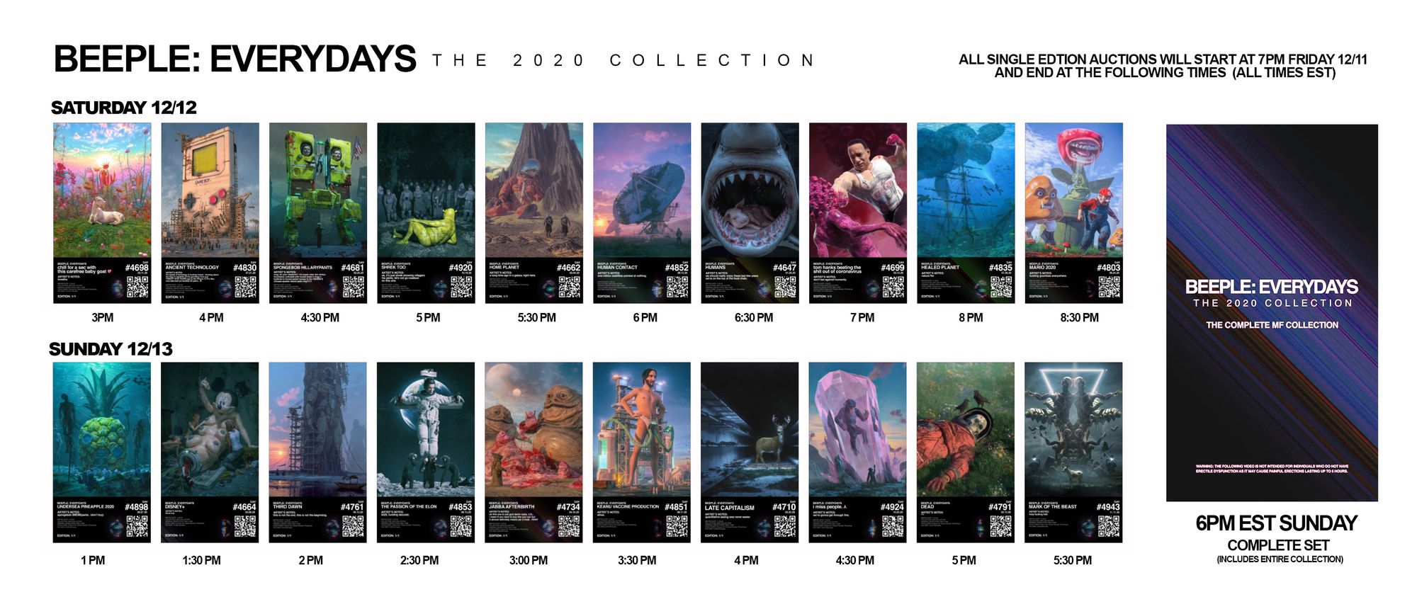 - Acclaimed artist and βEverydaysβ pioneer beeple did +1M in volume (21 1/1s, 3 open editions for 5 minutes, and 100 $1 editions) on Nifty Gateway this weekend! Big congrats to the artist, and to the NFT space overall. Check out his epic 1/1s schedule below β¦