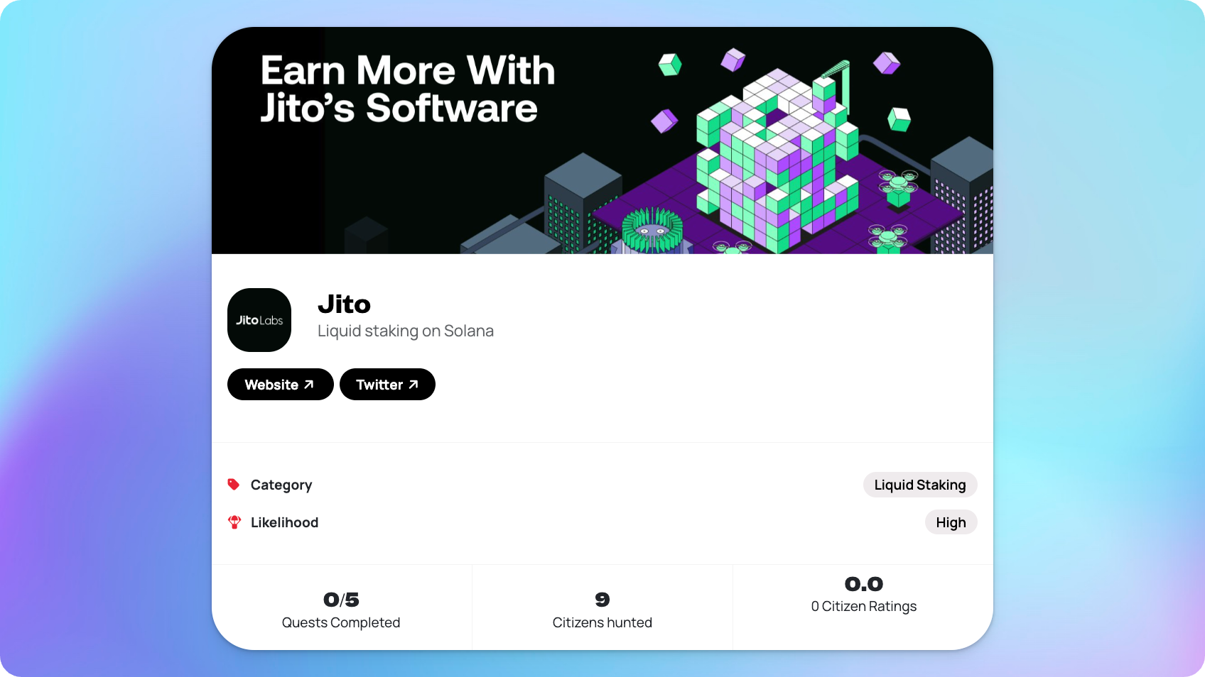 We've added the Jito protocol to Airdrop Hunter. We believe that this Solana liquid staking play has a high chance of sending users an airdrop down the road.