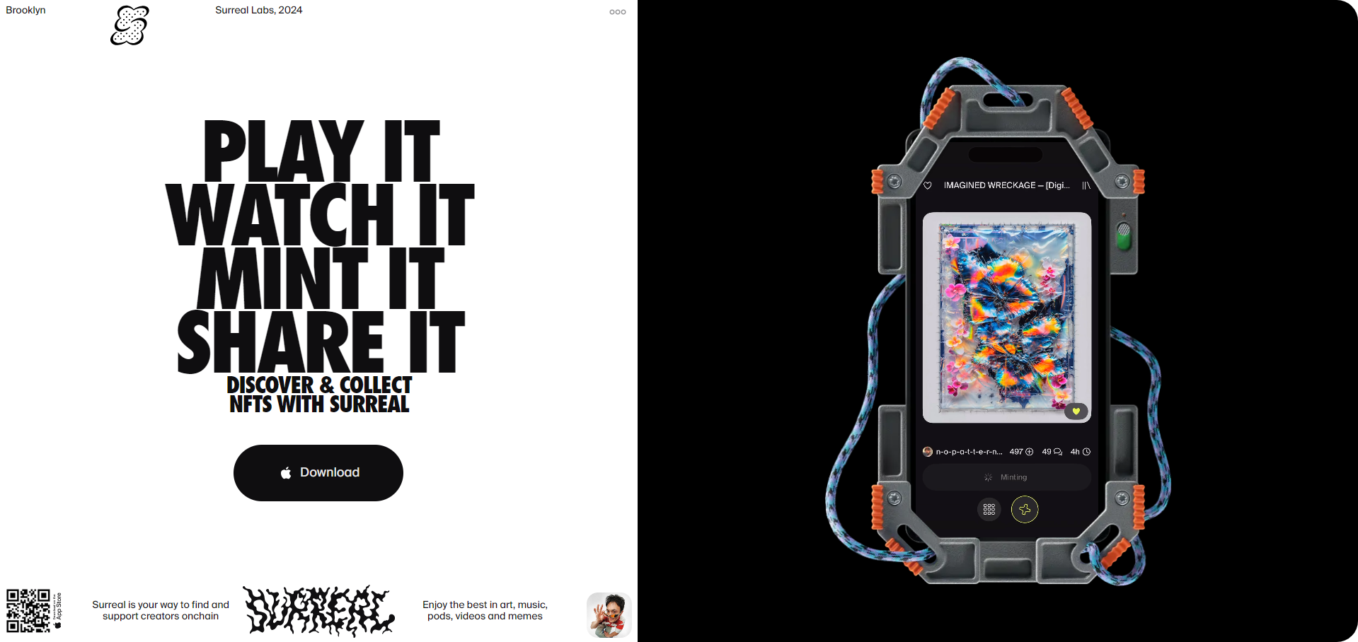 Currently available on Apple devices, Surreal is a hub for onchain discovery, from finding and watching onchain podcasts directly in your feed to minting the latest Zora drops.