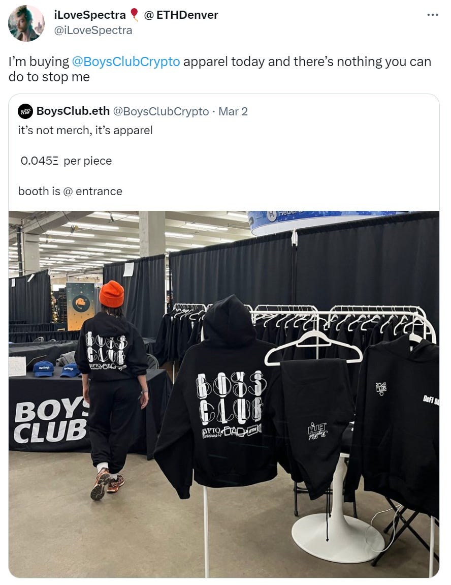 I’m personally guilty of selling some ETH for some Boys Club swag.
