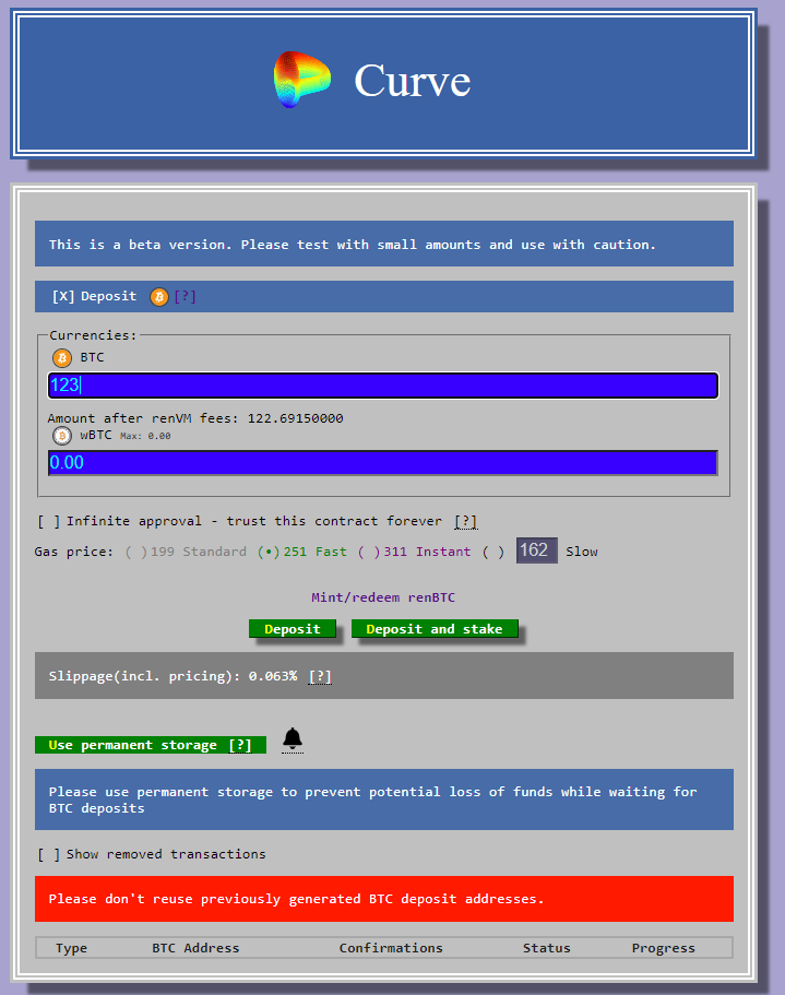 ⚒️ Developer Fact: The native BTC integration for Curve uses RenVM (creators of renBTC) in the background, more specifically the RenJS SDK.