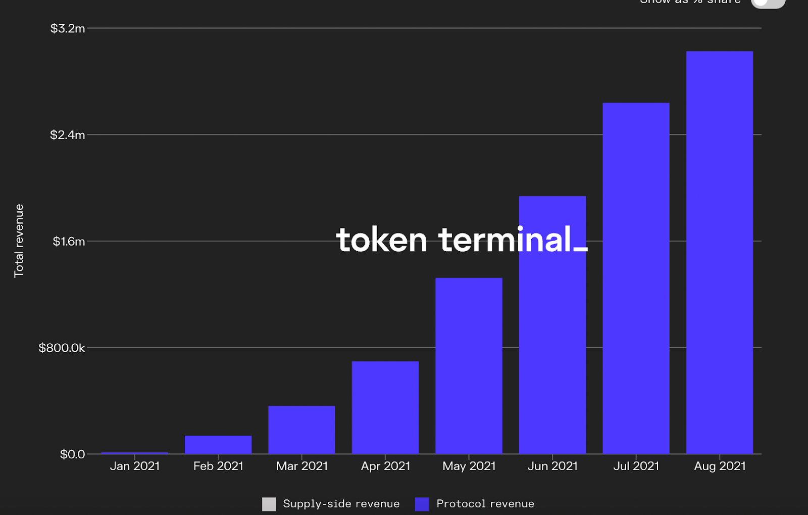 Since its launch in December 2020, Lido has generated $3.02 million in protocol revenue, about $4.53 million when annualized. While this may seem low when compared to other DeFi protocols, it’s worth pointing out that Beacon Chain staking yields, Lido’s revenue only consists of issuance, rather than also including returns from transaction fees and MEV. Lastly, despite it being active, Lido is currently not earning any revenue from Terra staking.