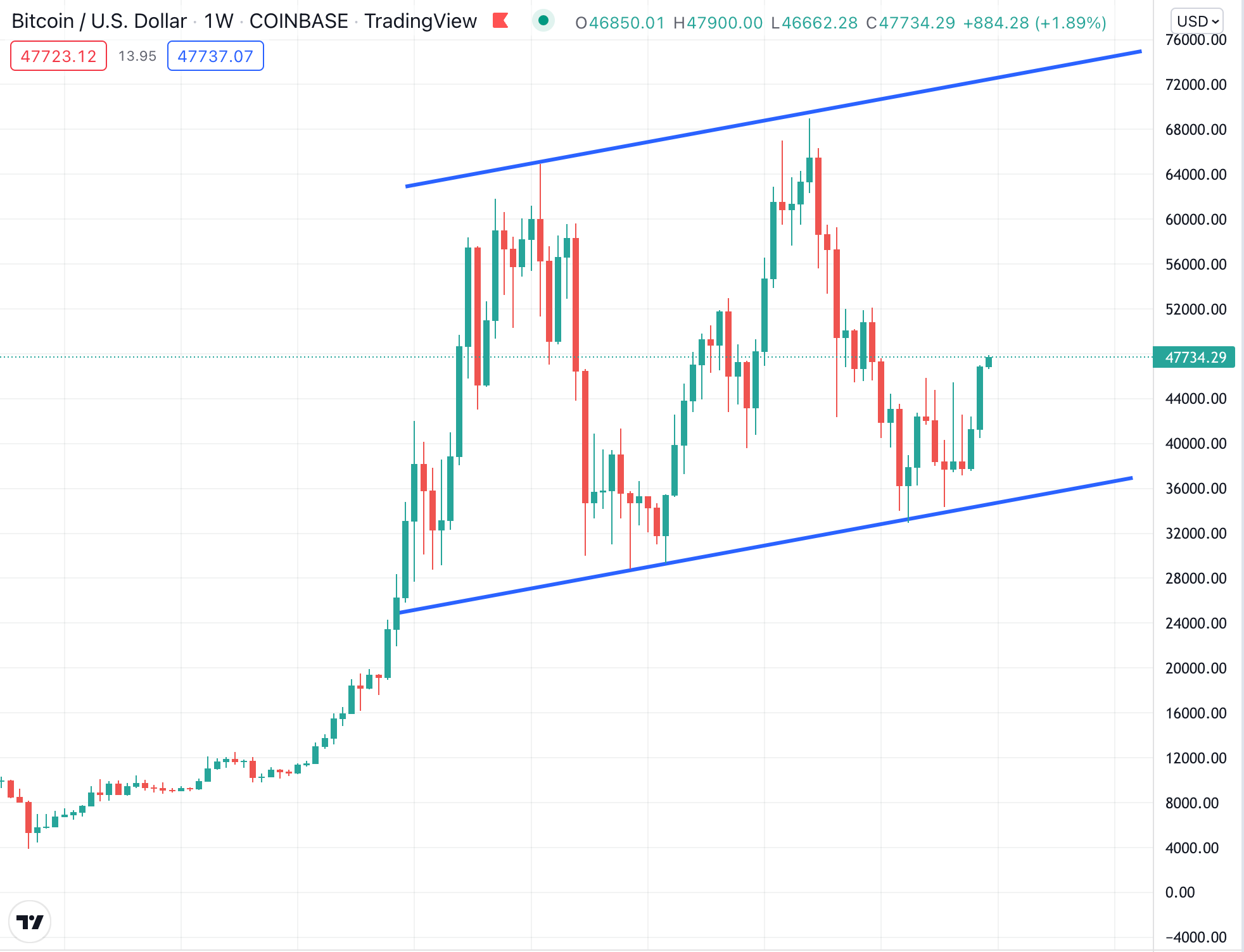 BTC held the $35,000 (-50% of the high) level three times on the weekly chart. Apparently, that was enough to exhaust the bears and embolden the bulls as it’s surged up to $47,500 since the local lows.