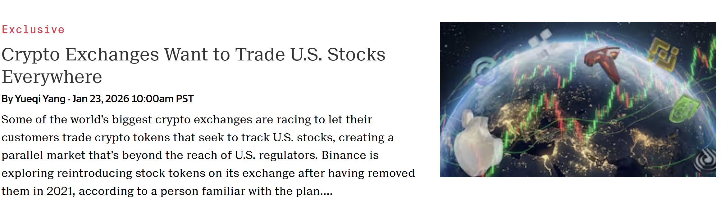 Mientras las plataformas de intercambio de criptomonedas y los magnates de TradFi se enzarzan en una frenética carrera armamentística para lanzar sus propios mercados bursátiles tokenizados, The Information informa ahora de que la plataforma de intercambio de criptomonedas