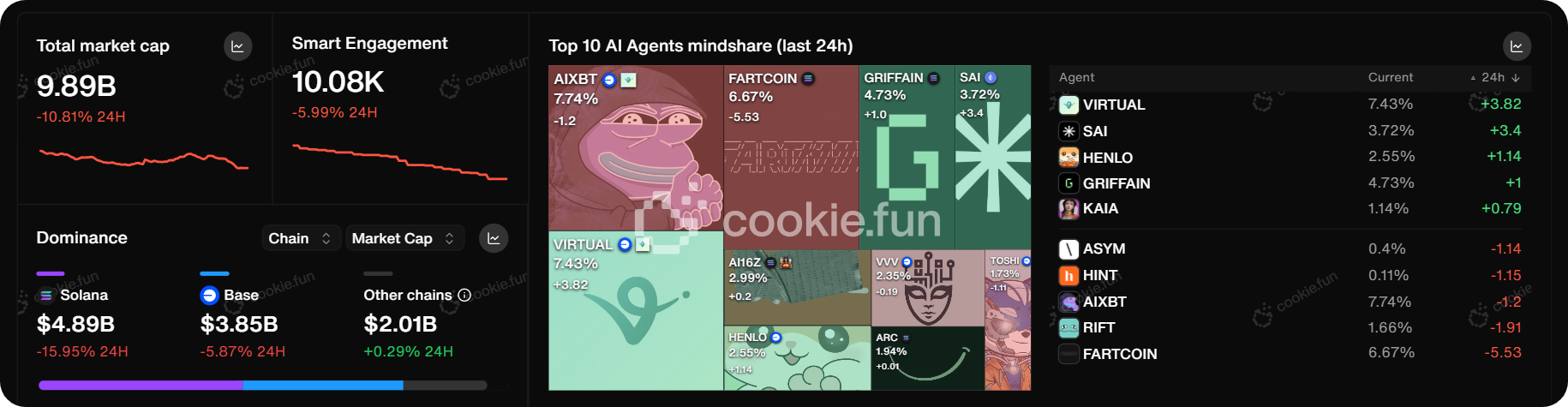 📸 Weekly Market Snapshot: The total market cap of crypto's AI sector dropped below $10B, a 50% slide from its position two weeks ago. The shakeout came as the new DeepSeek model, which didn't require much hardware, spooked selloffs in large AI and hardware stocks like Nvidia, in turn triggering wider sell pressure across the onchain AI scene.