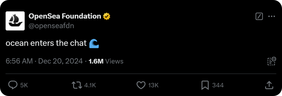 The latest indication here came as the NFT marketplace giant just unveiled its official Foundation account on X with a short teaser: "ocean enters the chat."