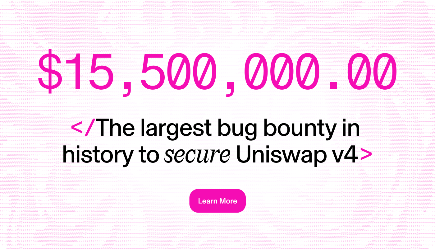Uniswap Labs is offering the largest bug bounty ever: $15.5M for critical bugs in Uniswap v4! Built with community contributions and rigorously audited, v4 will be one of the most audited codebases ever to be deployed onchain, and continues Uniswap’s commitment to security.