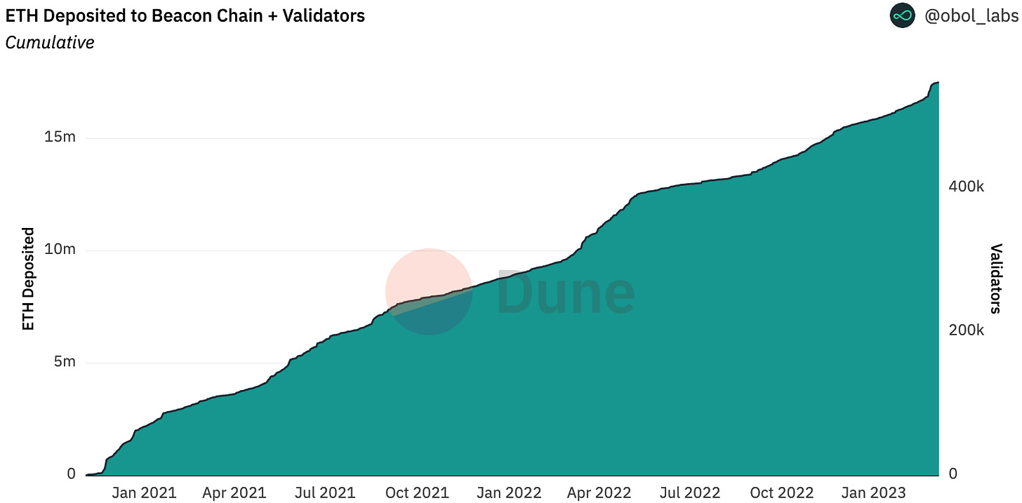 Dune AnalyticsShapella alters the paradigm, presenting stakers the ability to withdraw both accrued rewards and their initial node collateral!