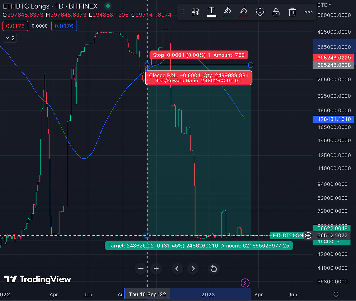 Admittedly, this trade is significantly less crowded than the Merge trade, with ETH/BTC longs on Bitfinex falling a staggering 81.5% from September 15.