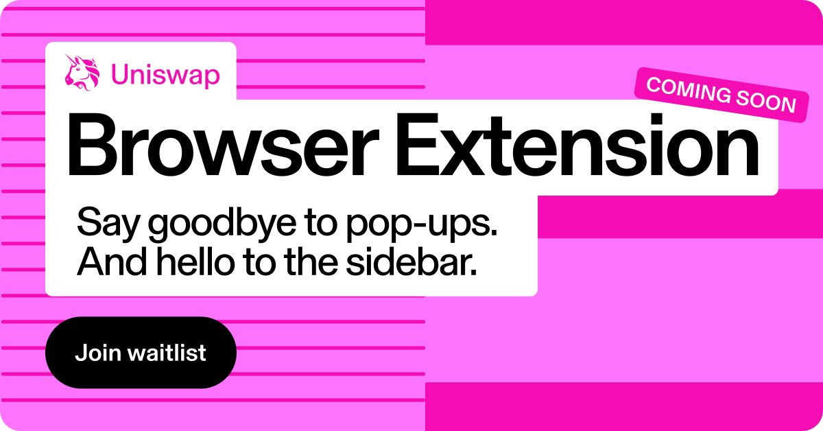 Meet the Uniswap Extension, the first wallet to live in your browser’s sidebar. Swap crypto anywhere on the web without dealing with pop-ups. Designed with built-in MEV protection for safer, smarter swapping. To join the waitlist, claim your uni.eth in the Uniswap mobile app.