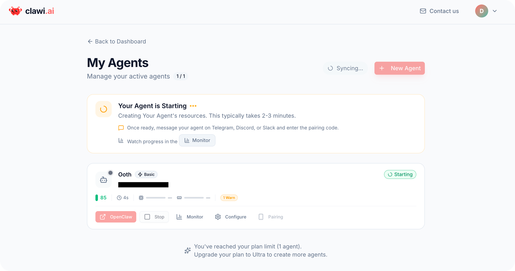 If you read last week’s article, you know I had real trouble getting the self-hosted version running, to the point I couldn’t use it. Clawi was a much smoother experience — just signup and connect to Telegram — and I’m actually using it on a daily basis now. Full disclaimer: I've used it for less than a week, so it could break. Do your own diligence. But I've followed Calle for some time and trust both his intentions and his work.