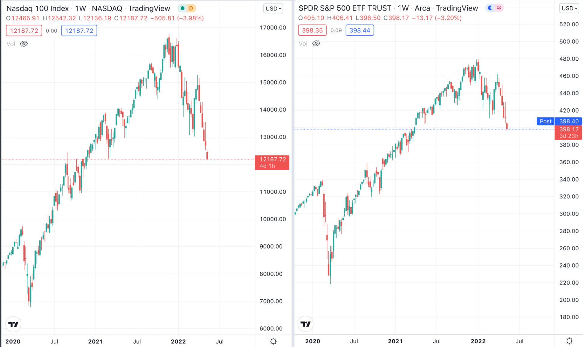 In order to kill demand and fight inflation, the Fed has sent the equities and crypto markets tumbling after raising interest rates. Both the S&P and NASDAQ have lost over a year of gains, down 17% and 27% respectively.