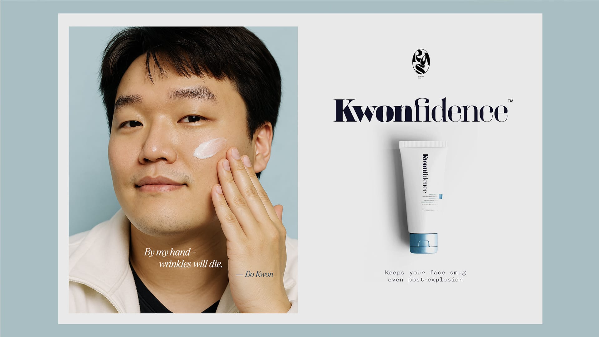 I built Kwonfidence Cream™ to be the most ambitious facial product in human history. A fully algorithmic moisturizer designed to maintain hydration parity under any conditions—be it harsh winds, extradition orders, or a $60B reputational collapse.