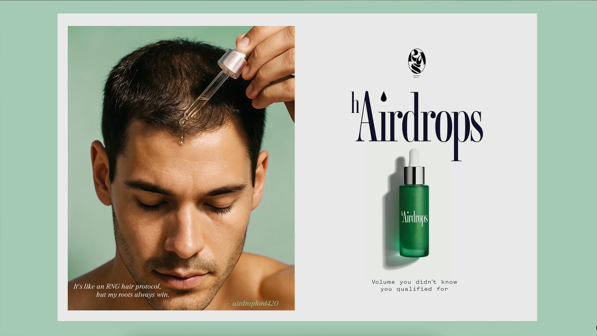 hAirdrops™ is the first conditioner you earn, not buy. The formula detects your on-chain grooming history and drops follicular liquidity straight to your scalp. No opt-in required.