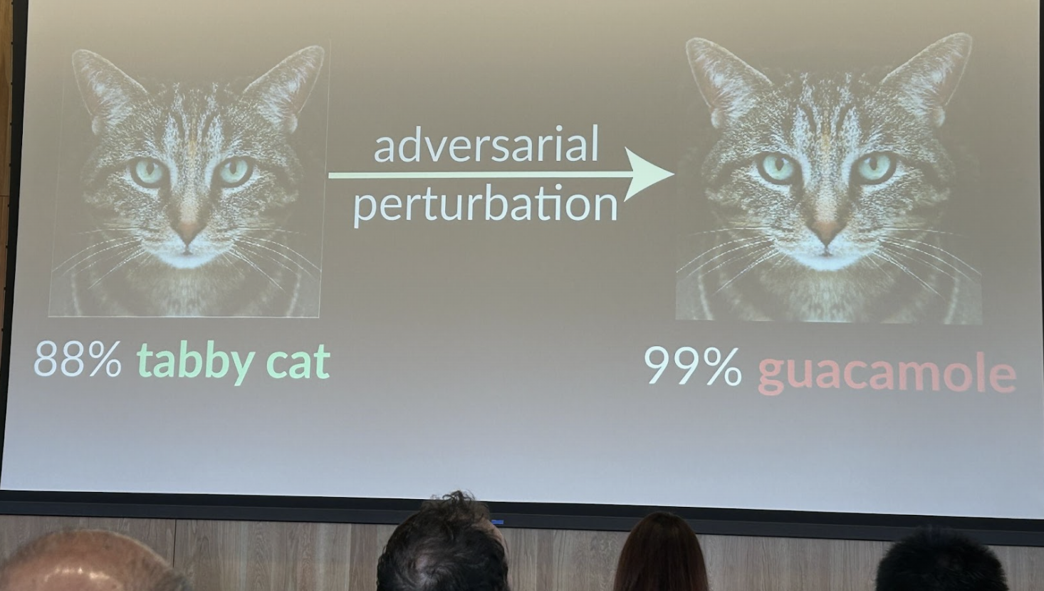 One of the most eye-opening chats came from Nicholas Carlini (previously Google DeepMind, now Anthropic), who raised concerns about adversarial AI, including x-risk and prompt injection attacks, and used the above cat vs. guacamole example to showcase just how easily these AI models can get duped into thinking one thing is another.