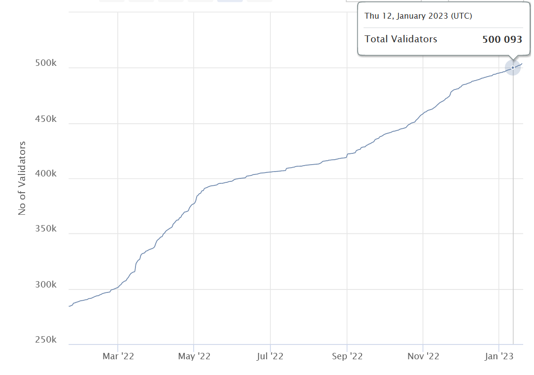 Beaconscan shows that validators crossed the 500K mark this past week, demonstrating Ethereum’s reputation as the most decentralized network yet.